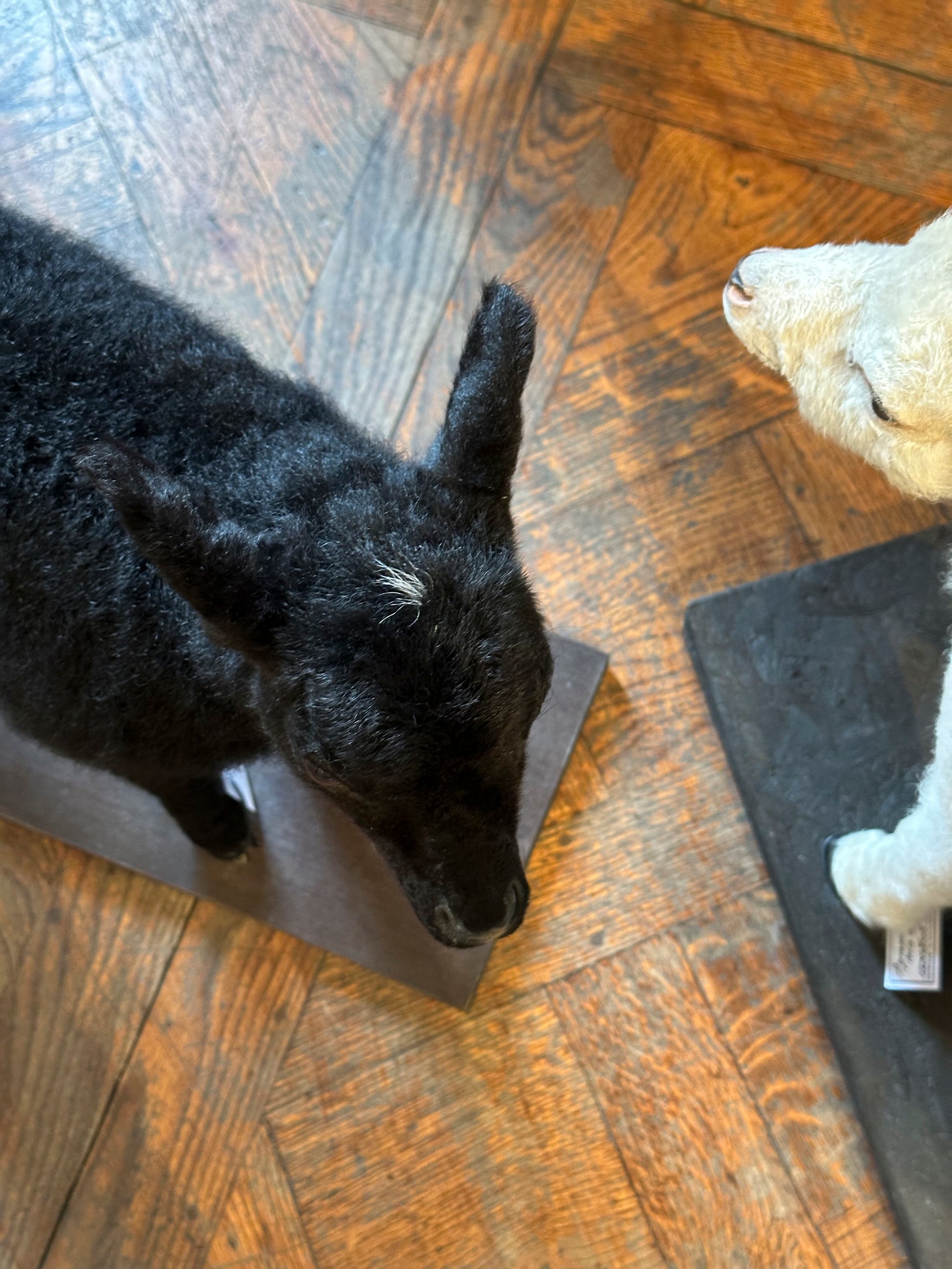 The black lamb (Ovis aries) is a distinctive variety of domestic sheep, recognizable by its dark, dense wool. This species, domesticated for millennia, has played a vital role in agriculture and livestock farming throughout the world. The specimen presented here exemplifies the wild beauty and hardiness of this breed. Mounted on a plinth, its intense black coat contrasts beautifully with its graceful silhouette.