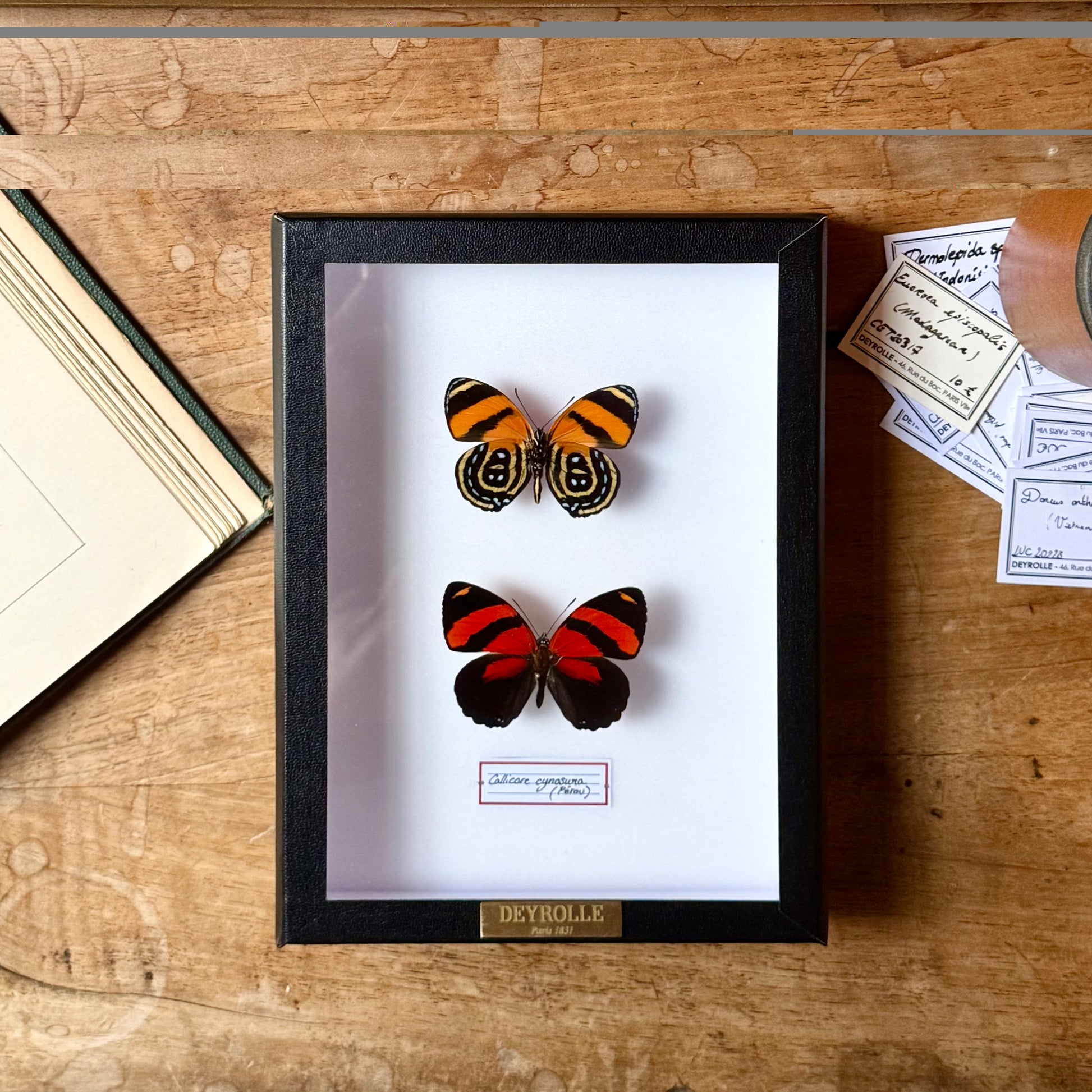 science that helps preserve the ephemeral beauty of these winged creatures. Each specimen is carefully mounted on a support, its wings are precisely deployed to reveal all their splendor. This meticulous technique allows you to appreciate the symmetry of the patterns and the variety of colors of the wings. The butterflies, once spread out, seem suspended in time, frozen in a graceful posture which reveals all the finesse of their structure.