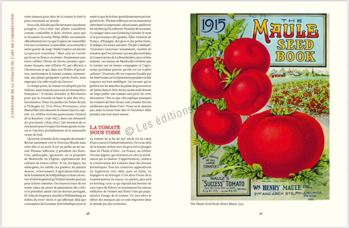 Black Pineapple Tomato, Blue Beauty, Beefsteak, White Peach, Marmande, Venus's Breast... At the Château de La Bourdaisière in Touraine, Louis Albert de Broglie created a unique collection dedicated to the most famous of the Solanaceae family in 1993. Together with Nicolas Toutain, head gardener, he invites us to discover the fascinating history of the tomato. They open the doors of their kitchen garden and share their expertise: all the stages of cultivation, from sowing to harvest, including a few simple recipes for enjoying them to the fullest. A comprehensive growing guide presents the cultivation techniques for a selection of the most productive, resistant, and flavorful tomatoes. A captivating journey to the heart of the National Tomato Conservatory.