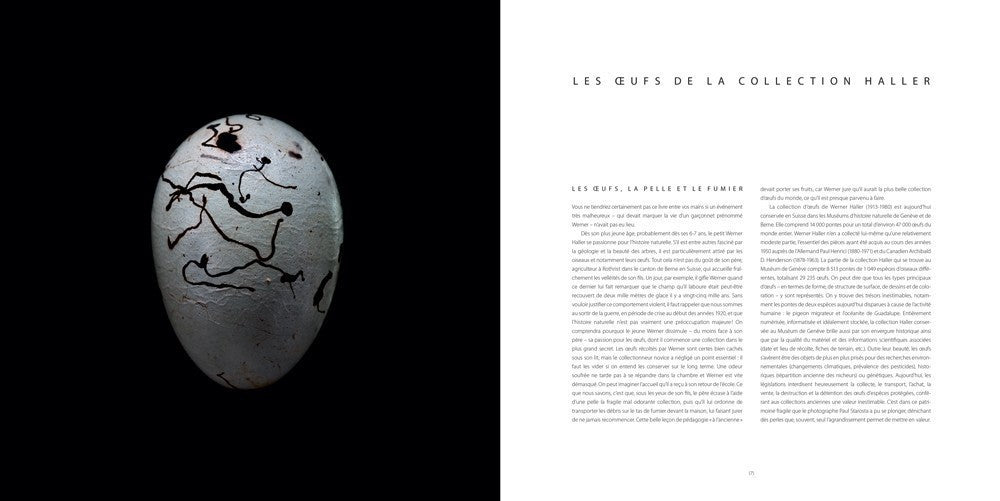 Fragile and rarely exhibited, the eggs nevertheless conceal a surprising visual richness: delicate patterns, varied textures, unexpected colors. True natural works of art, they raise many questions about their diverse shapes and hues. Intrigued by this diversity, Paul Starosta photographed the finest specimens from the 30,000 eggs in the Werner Haller collection at the Geneva Museum. This book reveals the most fascinating ones, magnified by perfect lighting.