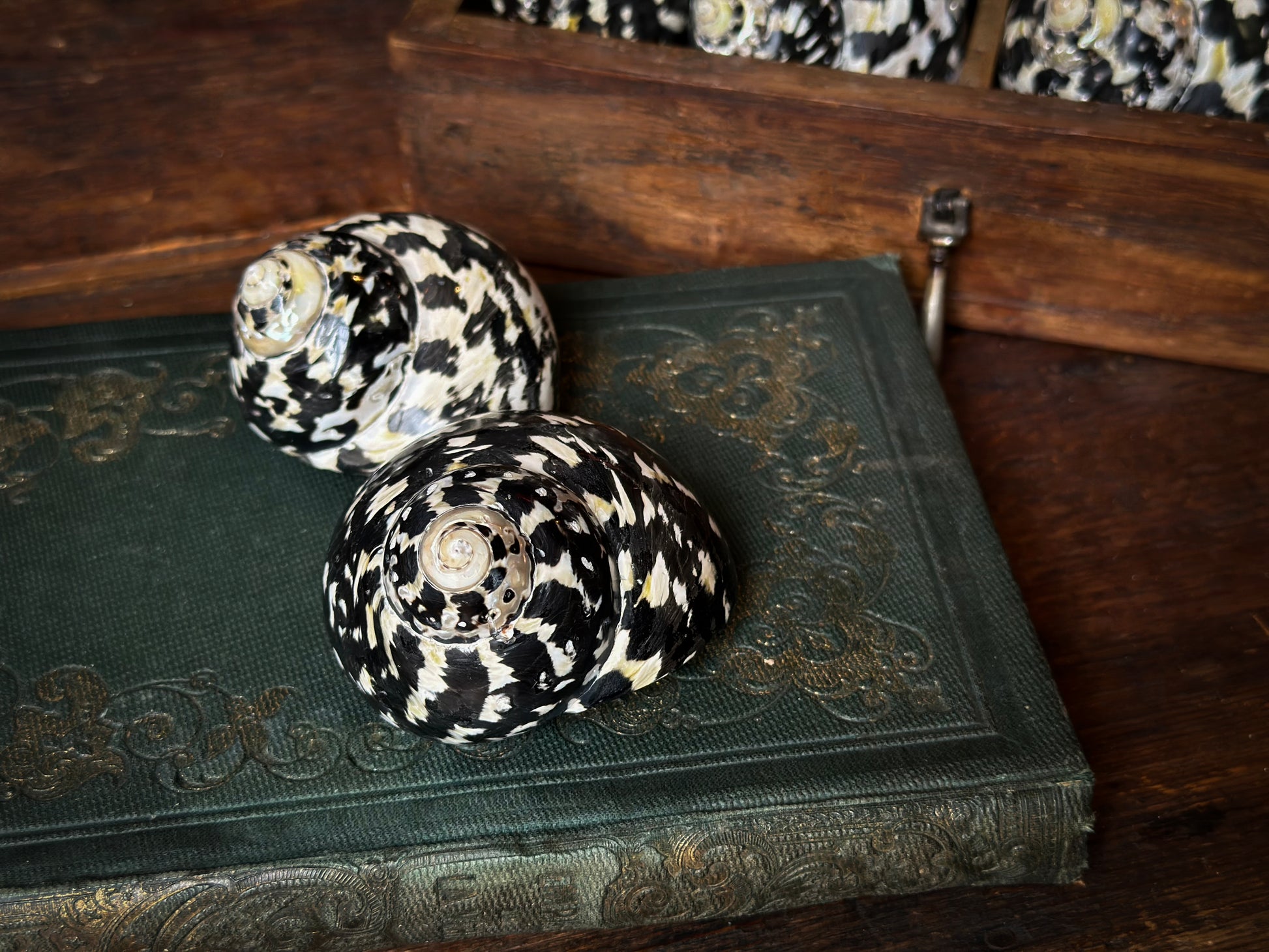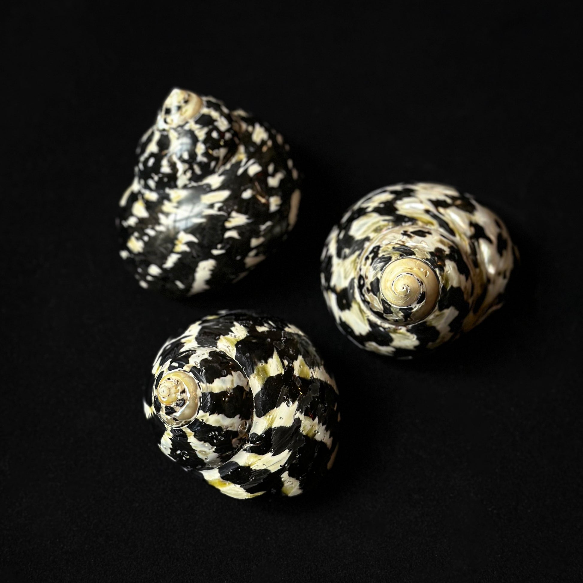 Native to the Caribbean, the Turbo magpie (or Cittarium pica ) is a remarkable seashell known for its graphic black and white pattern, which might evoke shards of porcelain. Its English name refers to the magpie, whose contrasting plumage it resembles.
