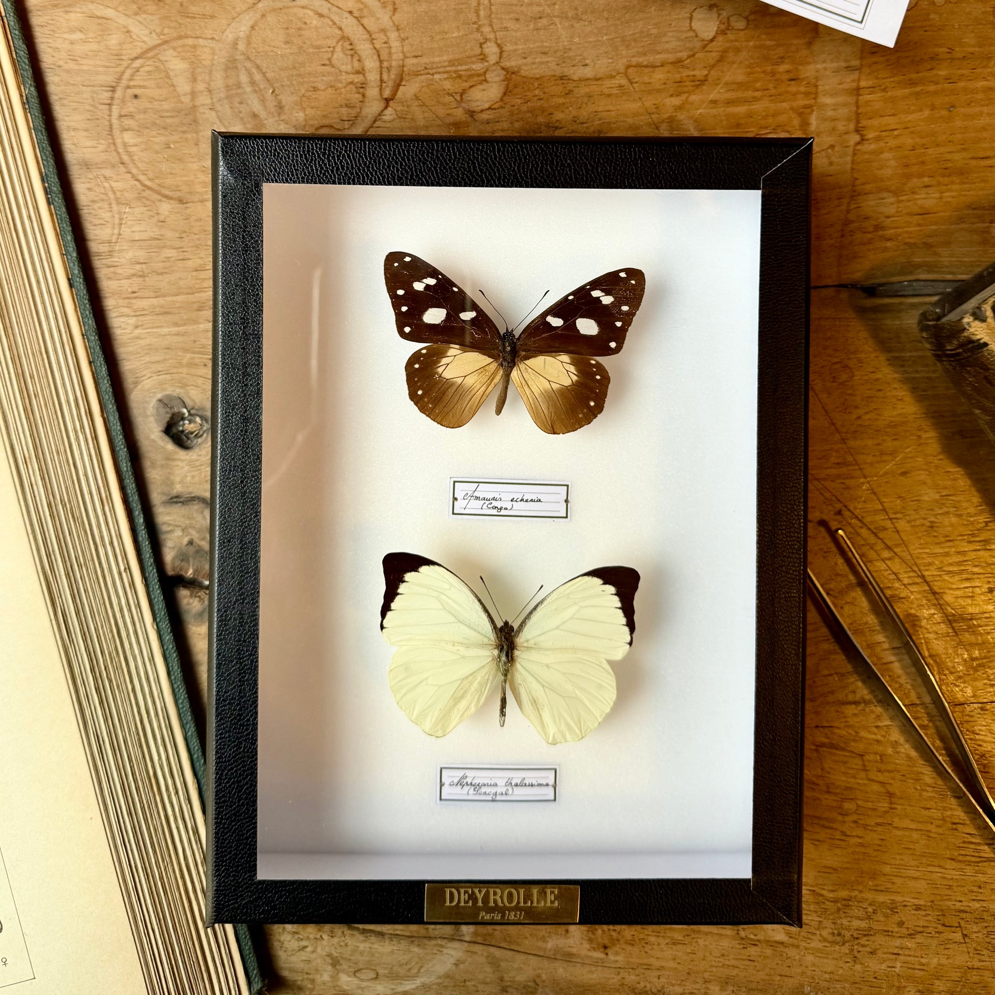 L'Amauris echeria, originaire du Congo, se caractérise par ses ailes marron parsemées de taches blanches, tandis que le Nepheronia thalassina, venant du Sénégal, présente de larges ailes blanches aux bords noirs sur les ailes supérieures. Ces deux papillons, issus de la région subsaharienne, contribuent à la richesse de la biodiversité des forêts d'Afrique de l'Ouest.