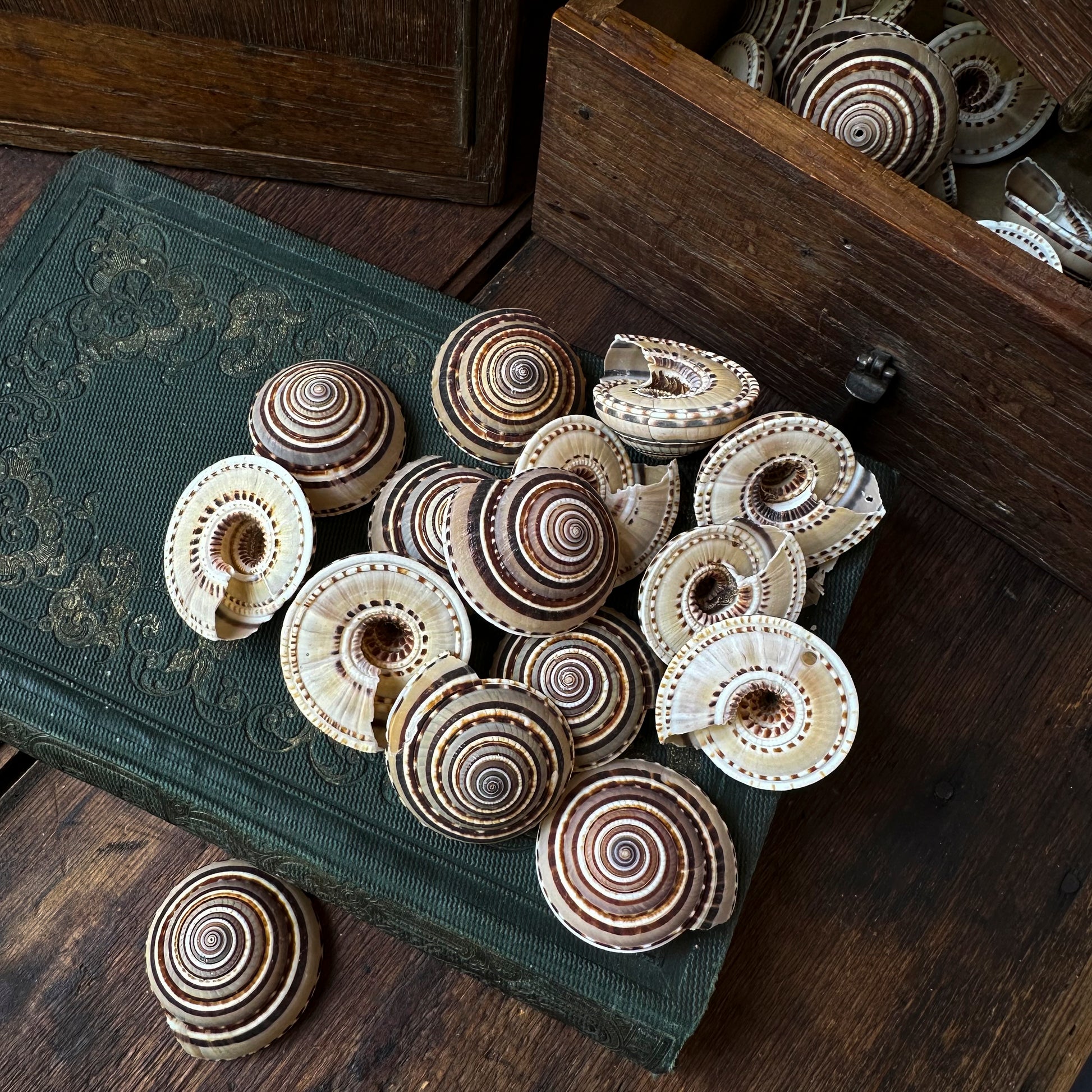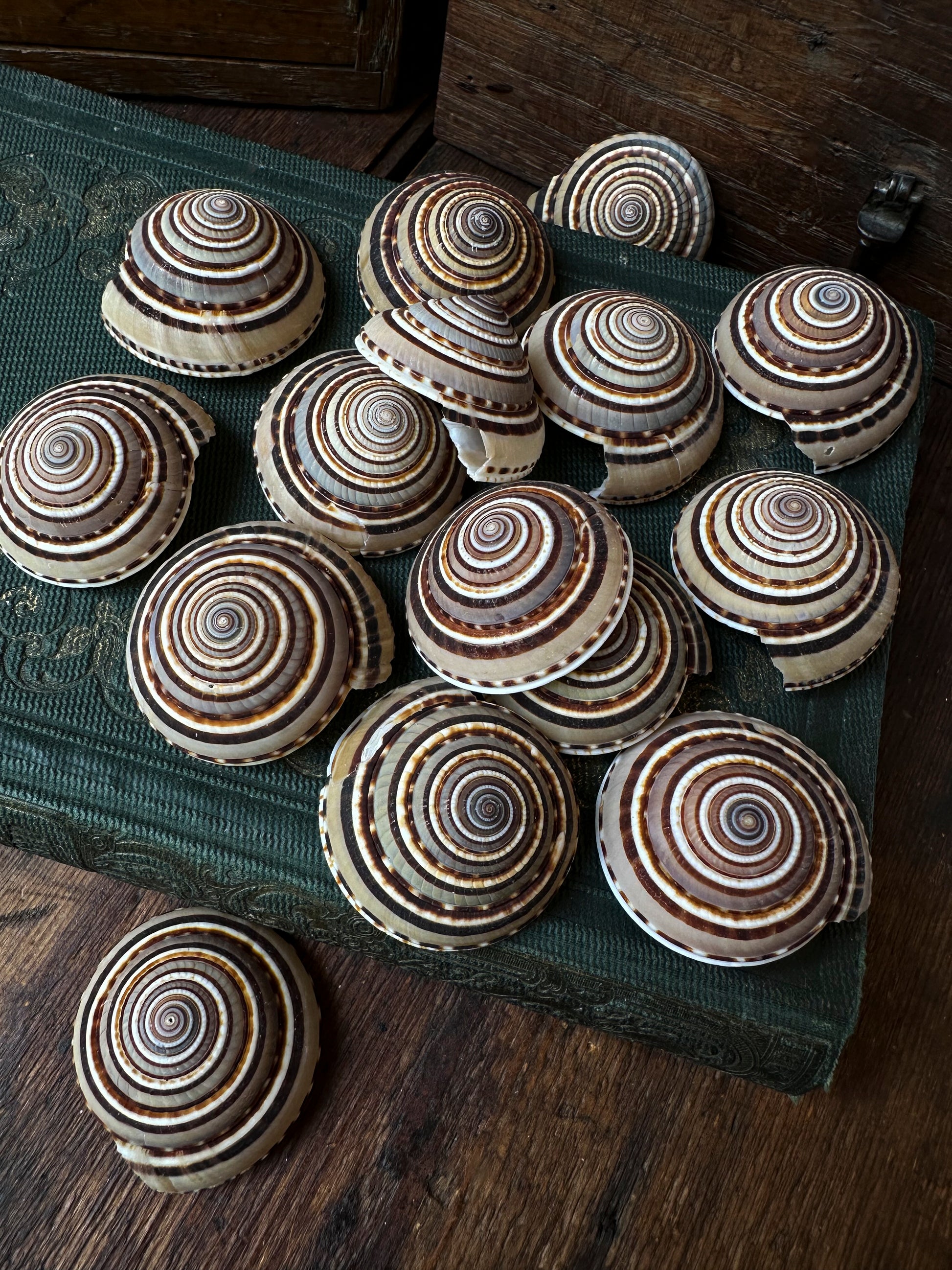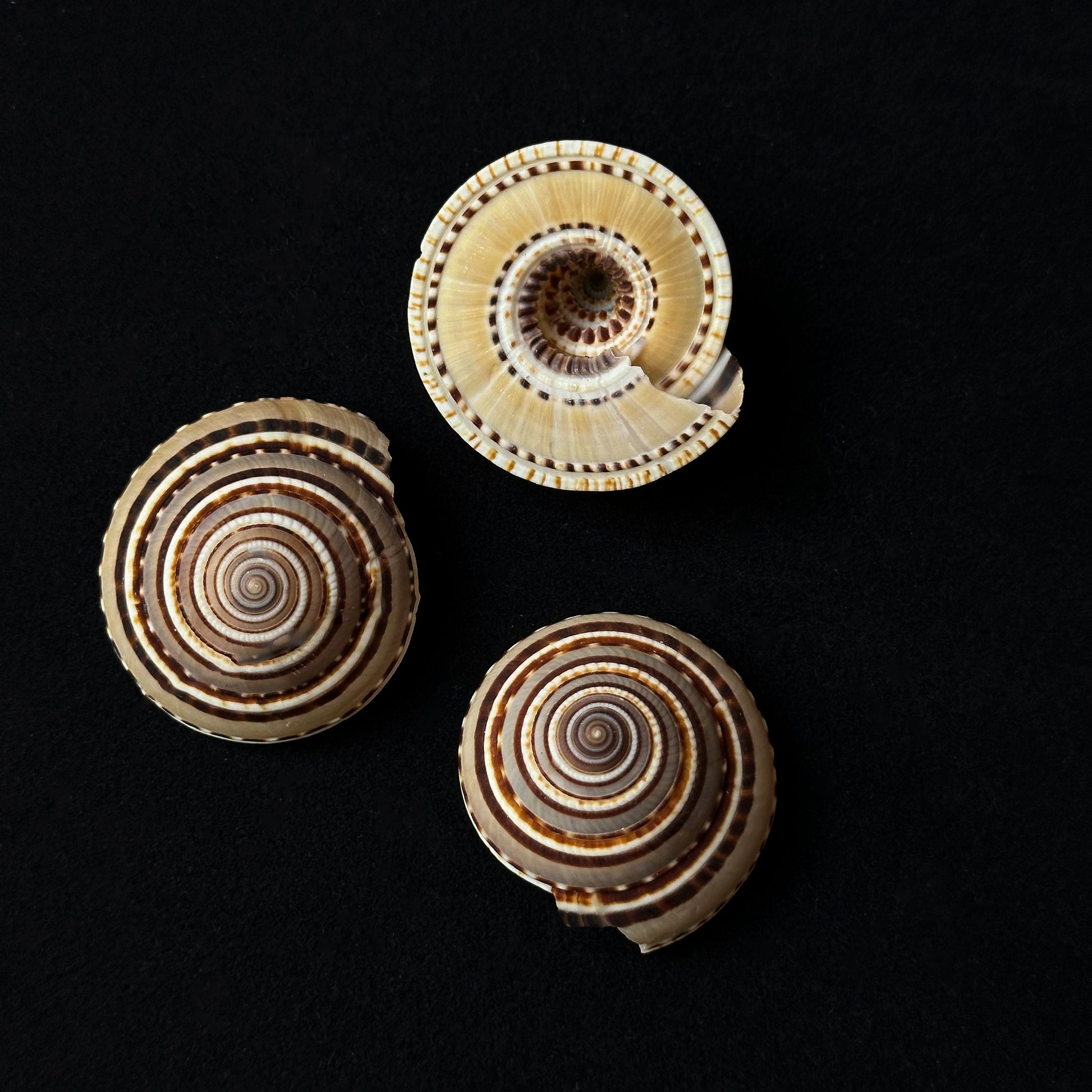 Cette coquille hypnotique, aux spirales géométriques parfaitement dessinées, appartient à Architectonica perspectiva, un gastéropode marin vivant dans les zones sablonneuses peu profondes des océans Indien et Pacifique.