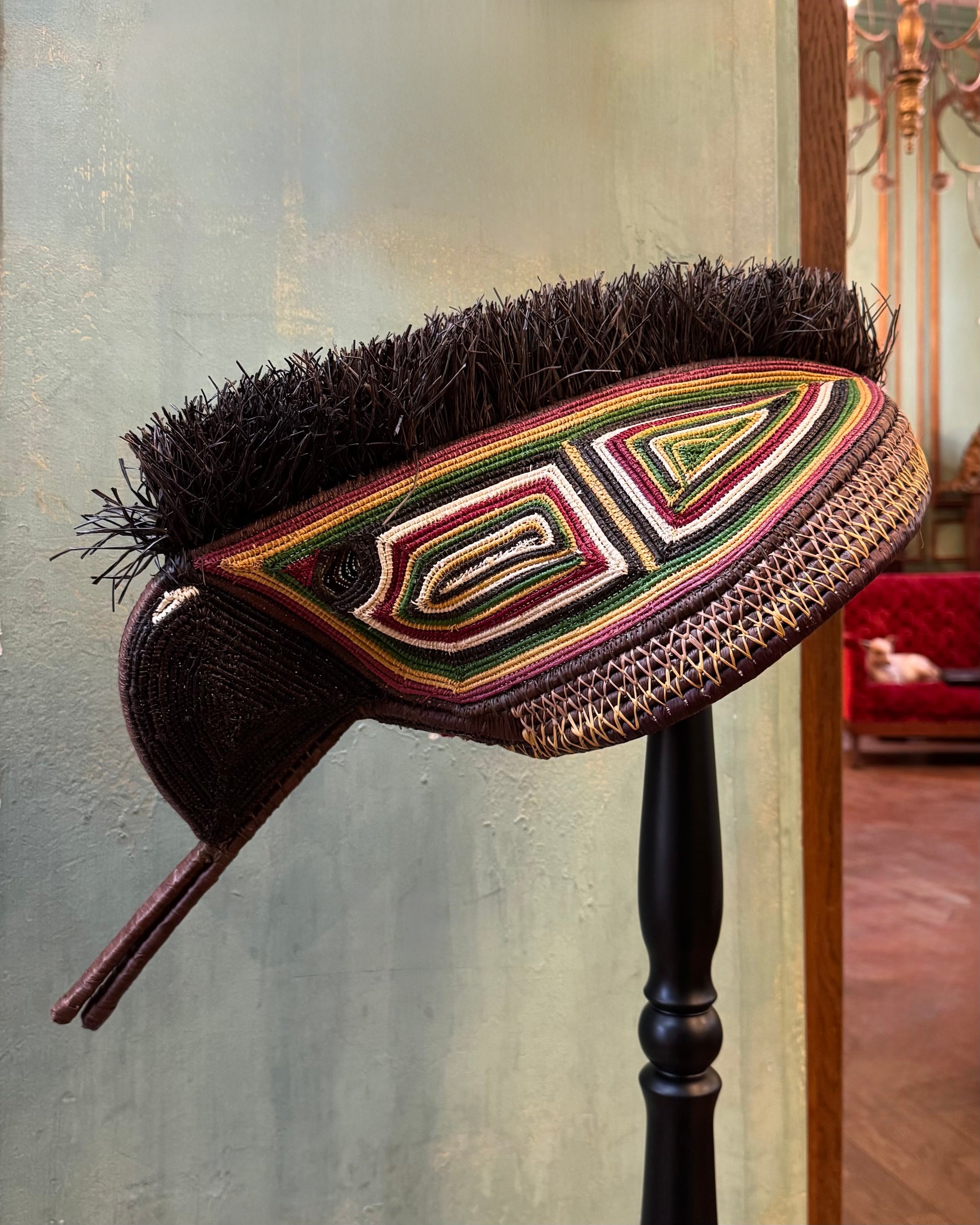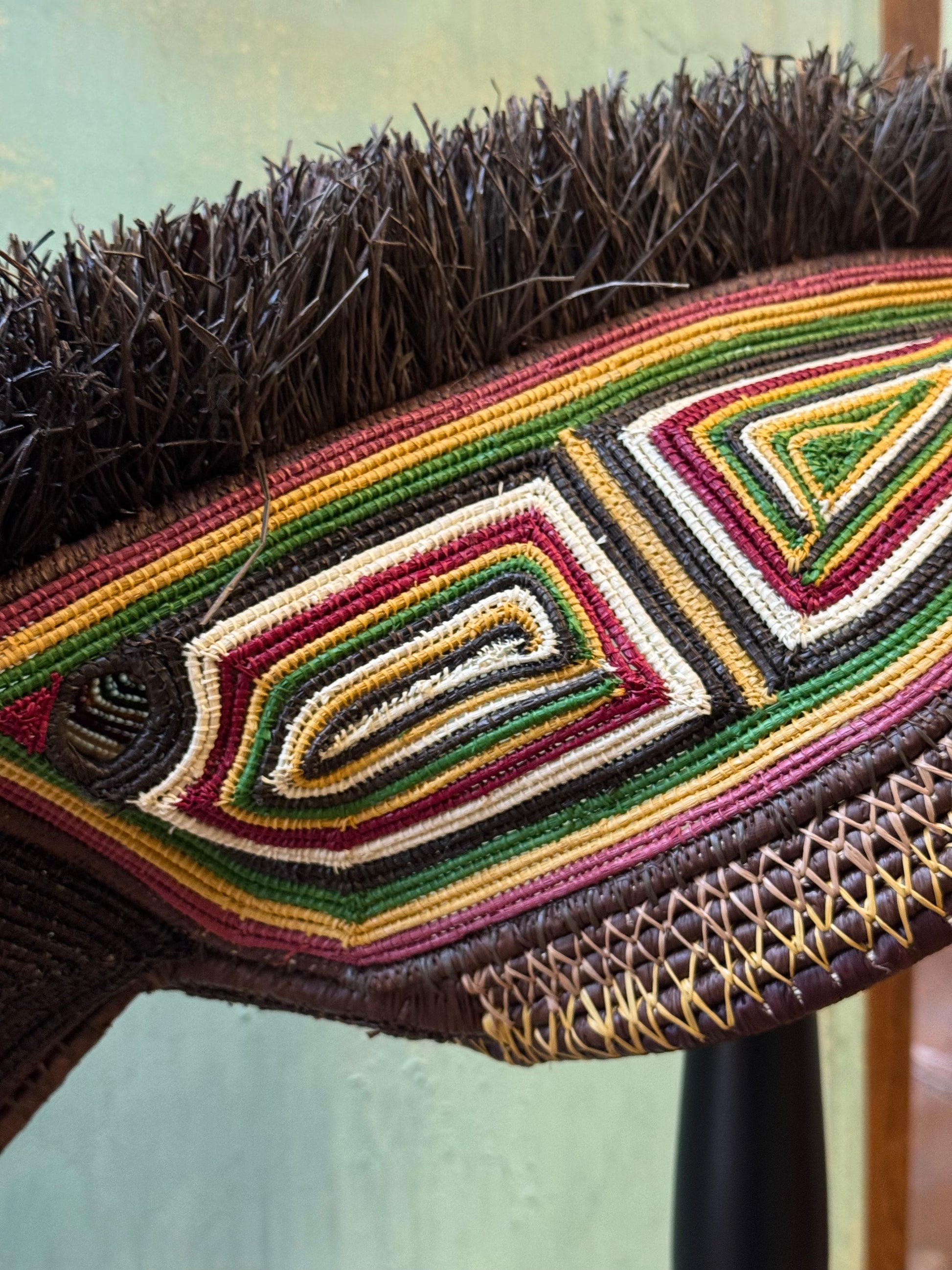 Véritables objets d'art, ces masques sont tissés et réalisés avec des matériaux et teintures naturelles par des femmes de tribus Wounaas et Emberas, d’Amérique centrale. Ces masques sacrés font échos à l’harmonie entre les êtres et les esprits, ils permettent d’entrer en communication avec les esprits de l’autre monde. Ces croyances tribales sont source de productions artistiques sans pareilles.