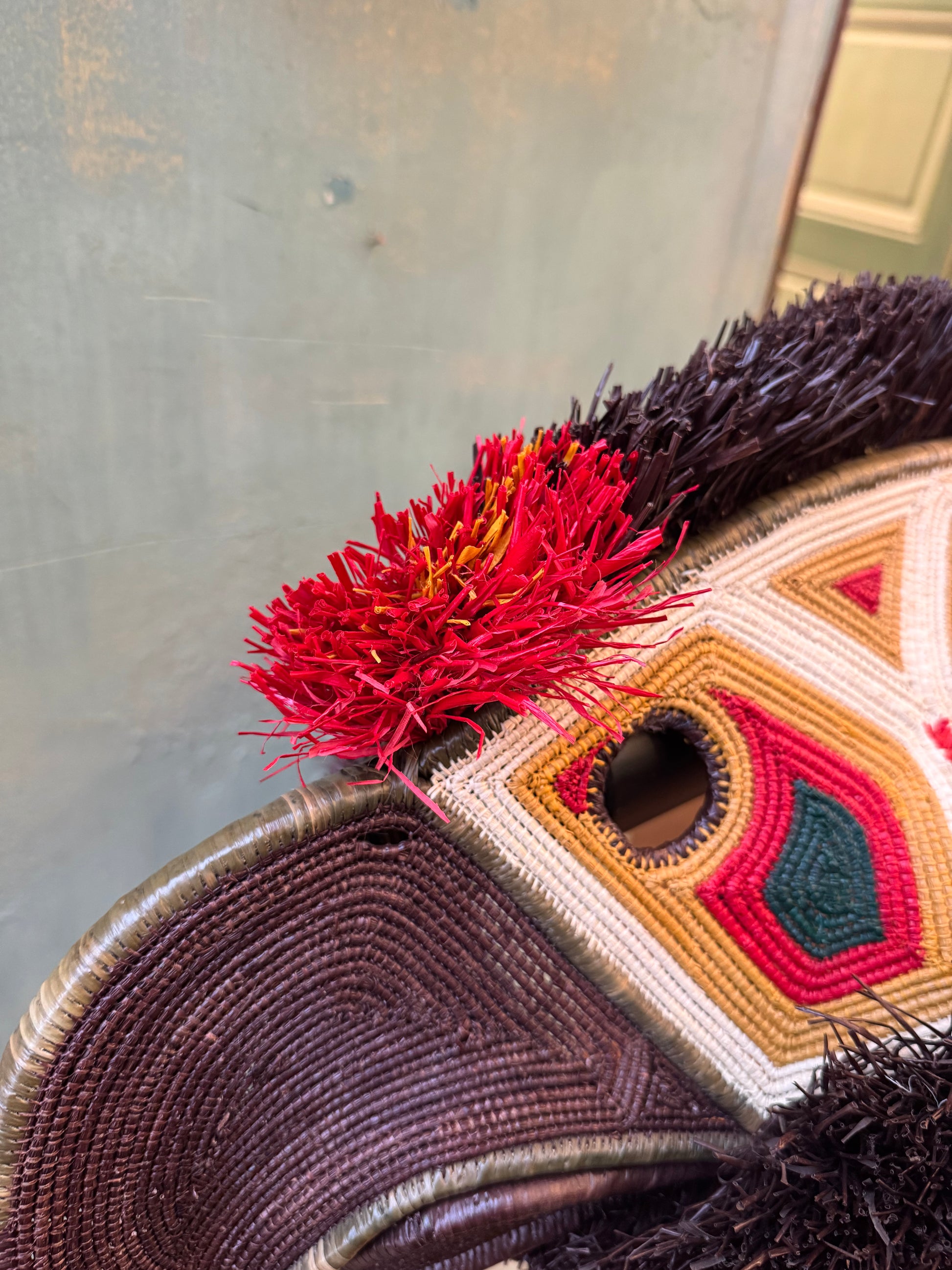 Véritables objets d'art, ces masques sont tissés et réalisés avec des matériaux et teintures naturelles par des femmes de tribus Wounaas et Emberas, d’Amérique centrale. Ces masques sacrés font échos à l’harmonie entre les êtres et les esprits, ils permettent d’entrer en communication avec les esprits de l’autre monde. Ces croyances tribales sont source de productions artistiques sans pareilles.