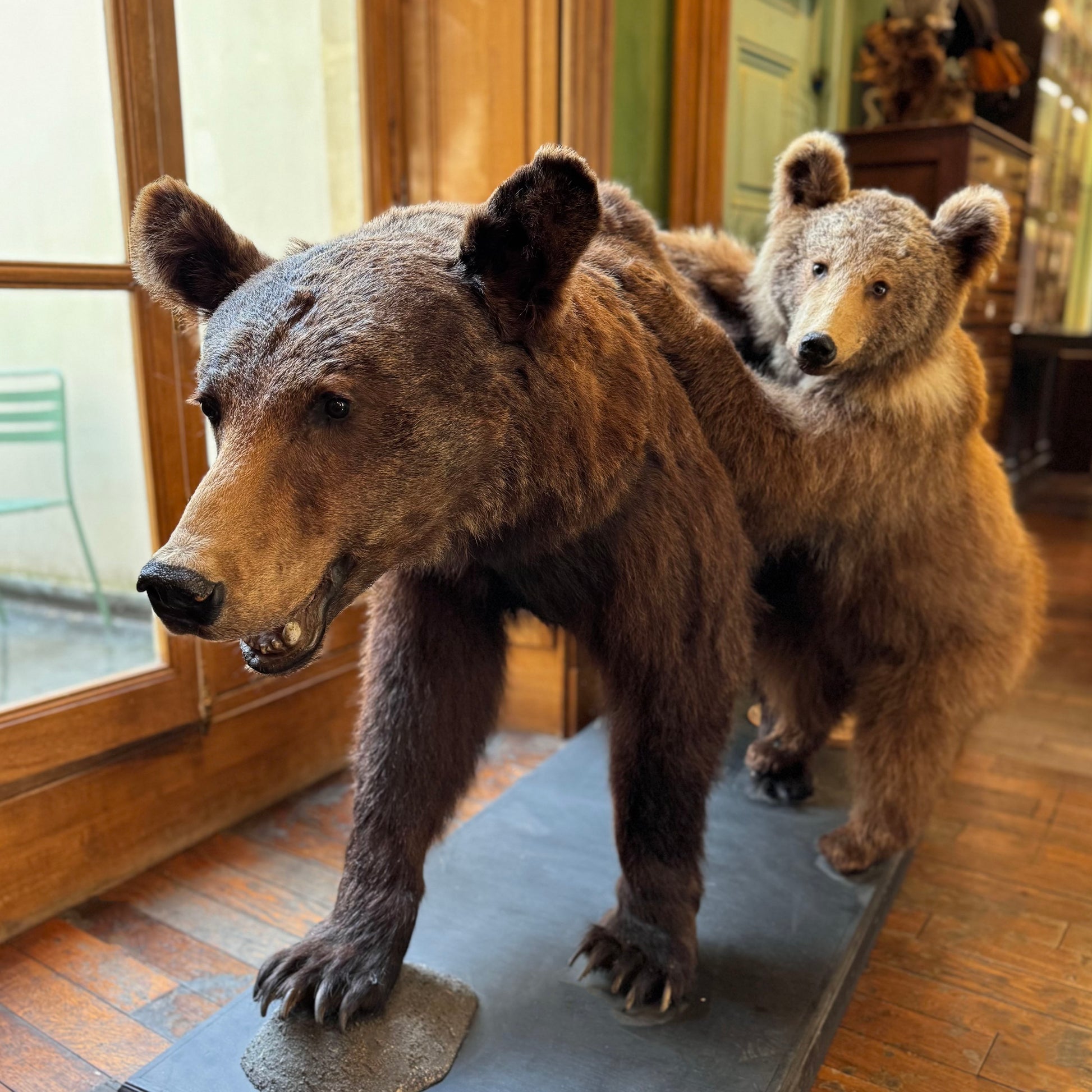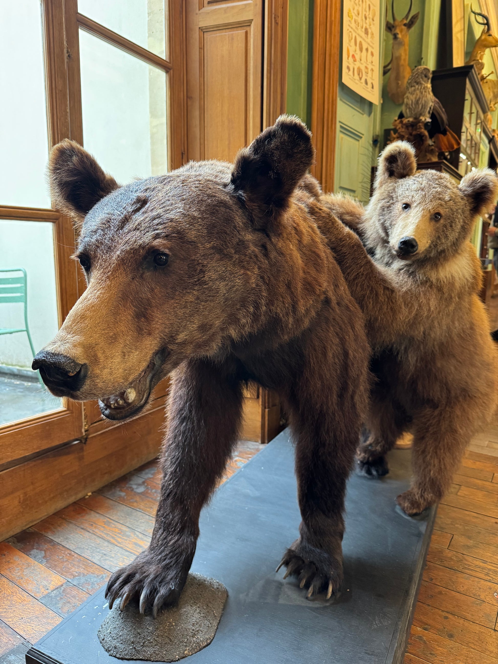 Présente dans de nombreuses cultures comme gardienne des forêts, l'ourse est symbole de force et de maternité. Ce duo illustre la beauté du lien filial et la transmission des instincts essentiels à la survie.