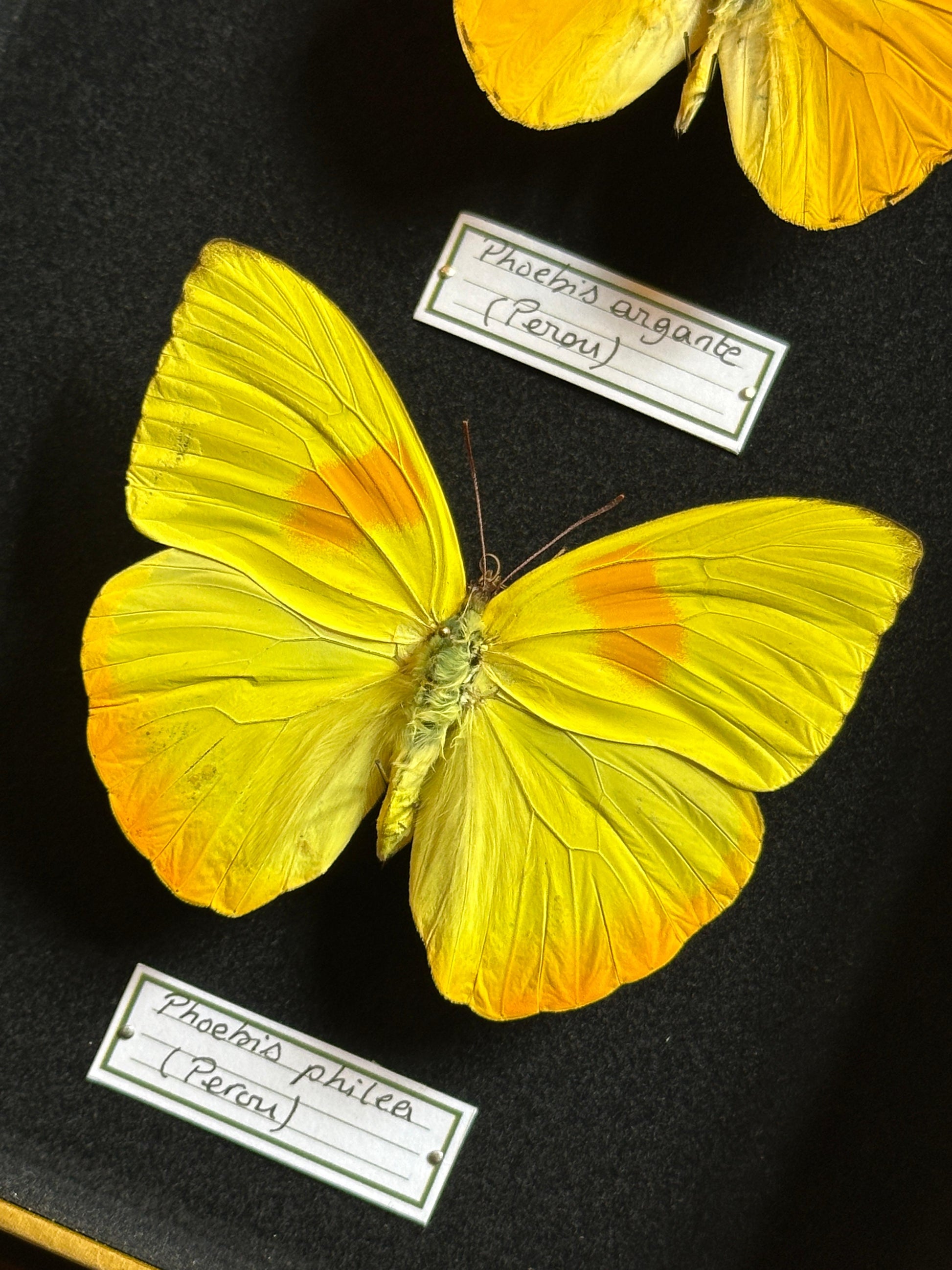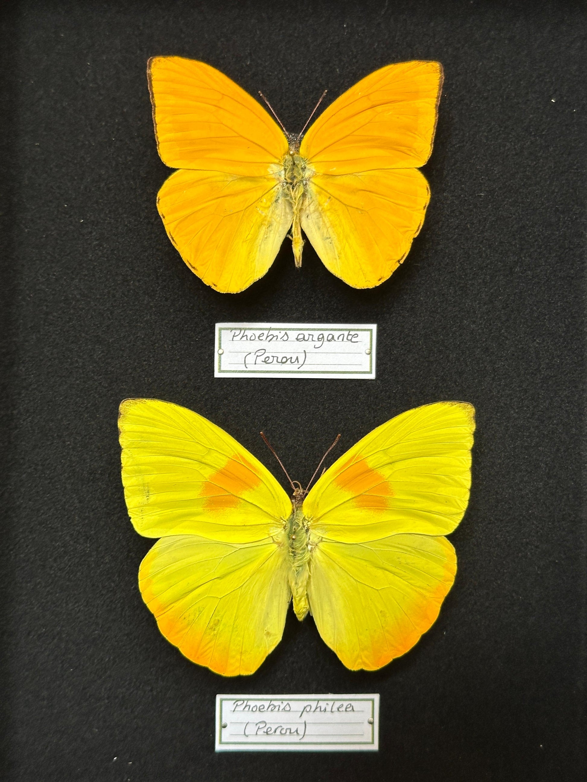Ces deux papillons flamboyants, Phoebis argante et Phoebis philea, appartiennent à la famille des Pieridae. Leurs ailes jaune rappellent les rayons du soleil, au point que certaines cultures les associent à la vitalité et à la joie de vivre. Chez ces espèces, la couleur vive joue un double rôle : attirer les partenaires et dérouter les prédateurs. Migrateurs infatigables, ils peuvent parcourir de longues distances, leurs vols rapides ponctuant le paysage d’éclats dorés.