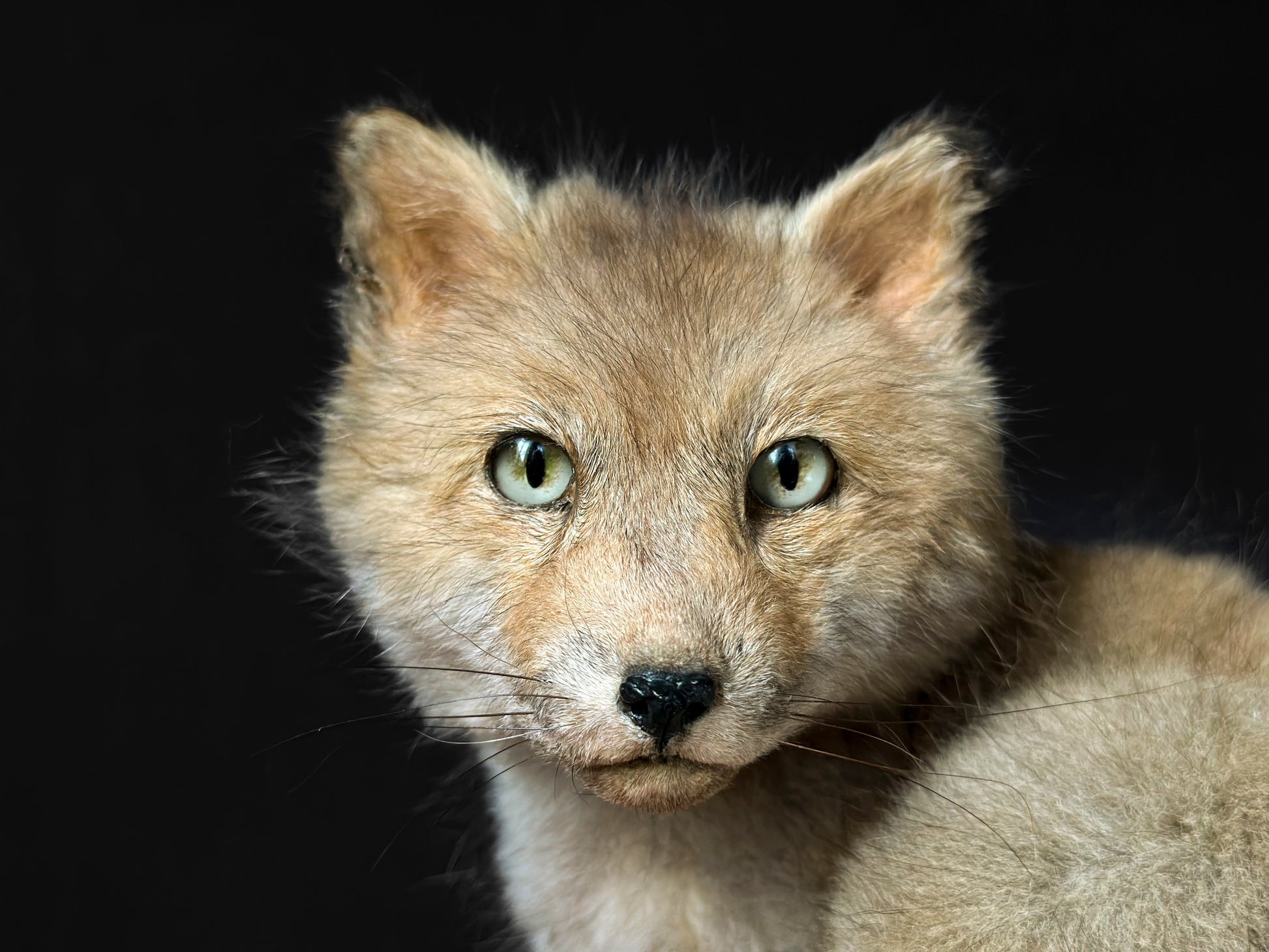 Naturalisation réalisée dans le respect des volumes et de la finesse du poil, elle restitue avec justesse l’expressivité particulière des renards en bas âge, un mélange de prudence, de fragilité et d’éveil au monde.