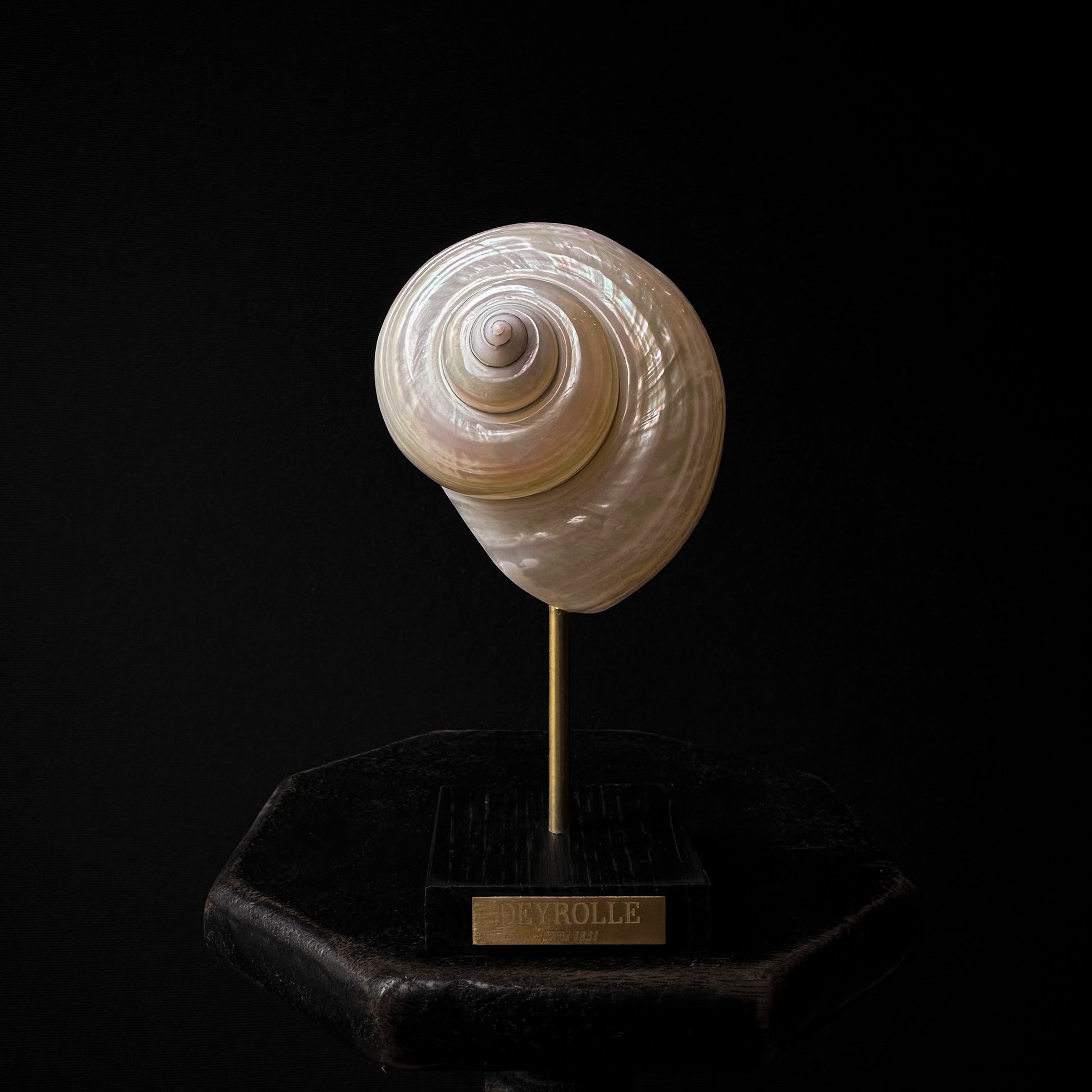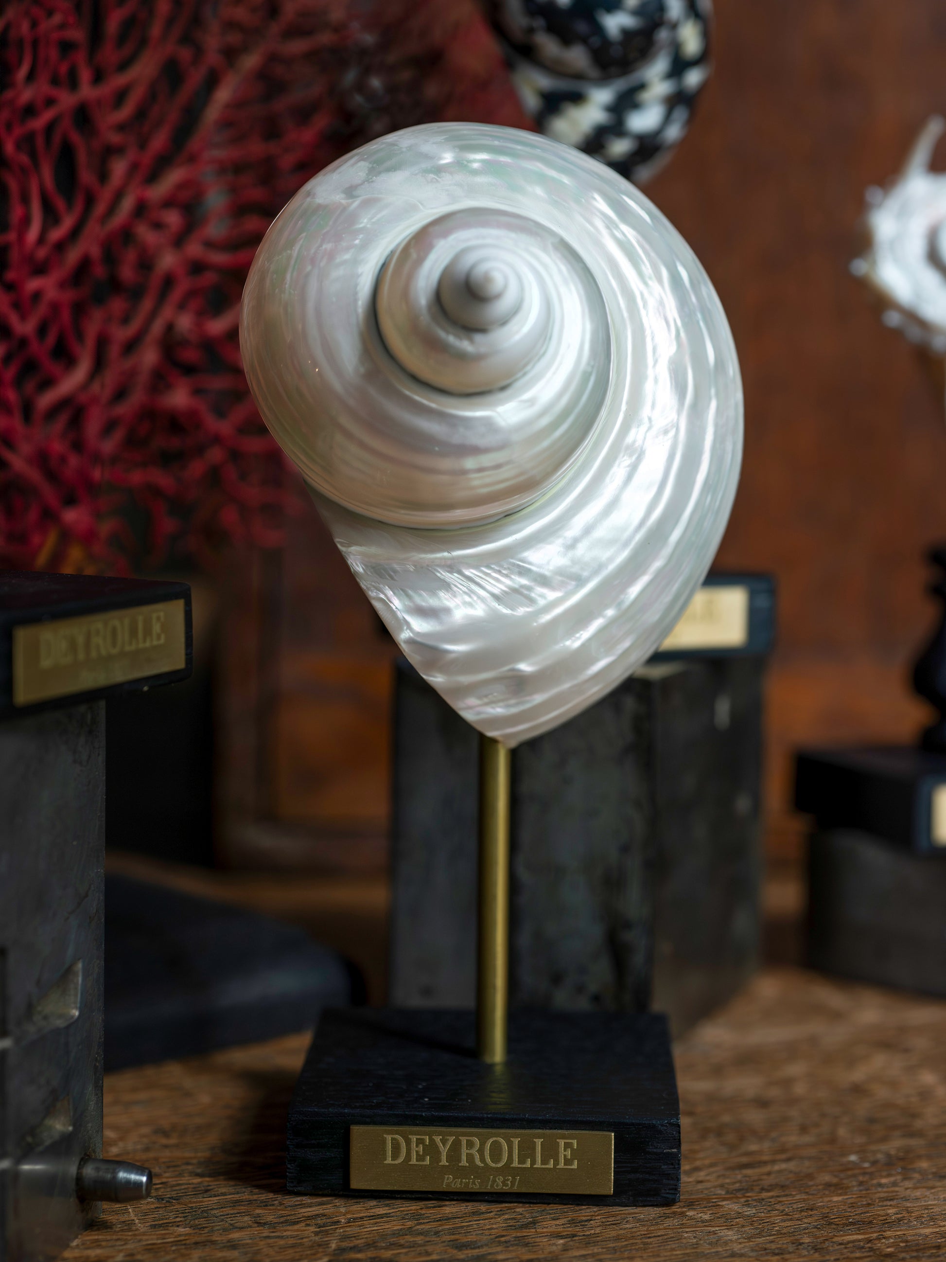 Nouveau joyau Deyrollien : Les coquillages sur socle. Toute une série a été récemment préparée à l'atelier et est désormais disponible en vente en ligne, comme en boutique, au 46 rue du Bac.